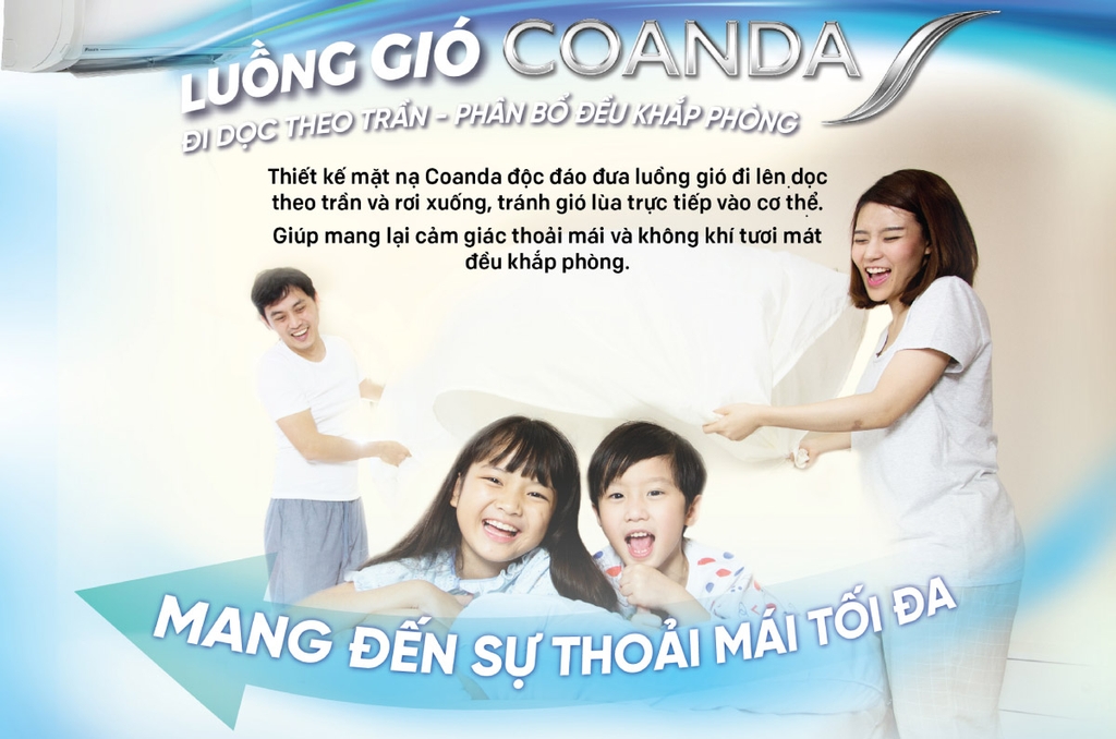 - Luồng gió dễ chịu Comfort – luồng gió lạnh bám trần, tránh thổi trực tiếp vào người dùng, tạo cảm giác dễ chịu.