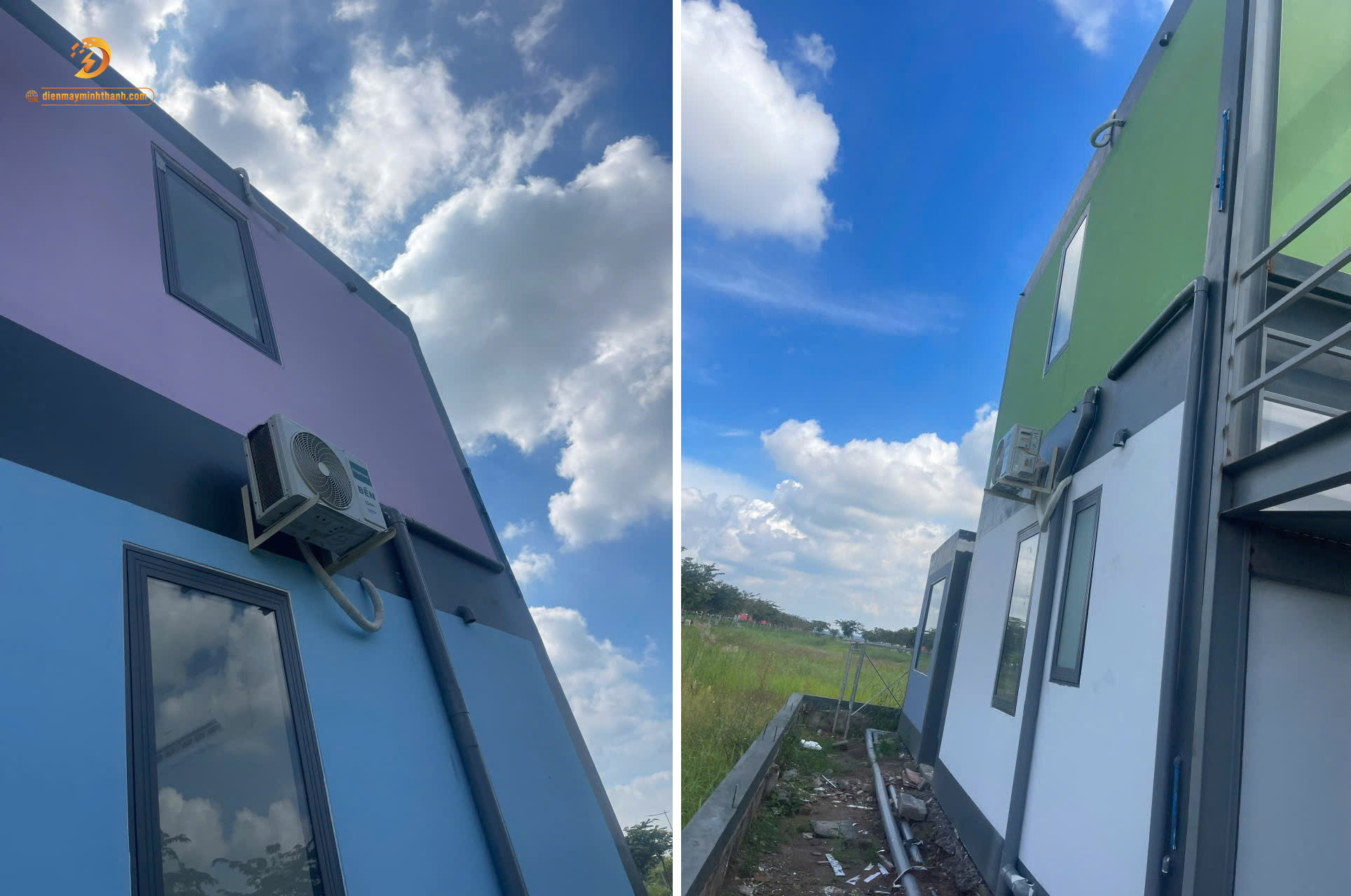 Trong quá trình triển khai, đội ngũ kỹ thuật đã đảm bảo tiến độ thi công nhanh chóng, lắp đặt gọn gàng – thẩm mỹ và đáp ứng đầy đủ khả năng làm mát cho không gian đặc thù của nhà container.