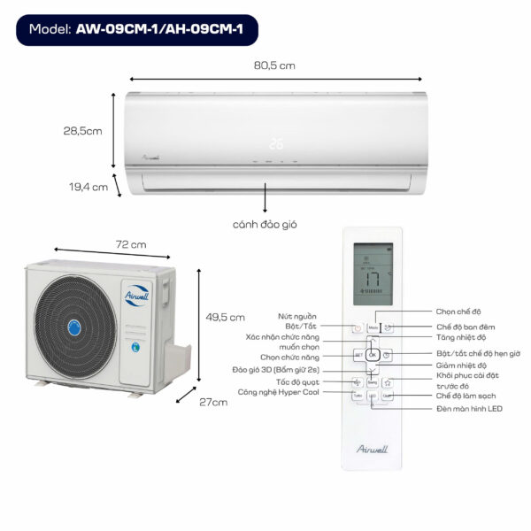 🌬️ Máy lạnh Airwell AW-18CM-1/AH-18CM-1 2HP – Làm lạnh nhanh, vận hành ổn định