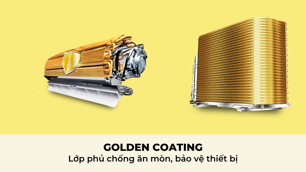 - Trang bị ống dẫn gas bằng Đồng, lá tản nhiệt bằng nhôm phủ lớp chống ăn mòn Golden Coating.
