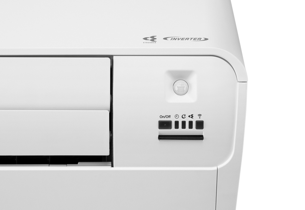 Mắt thần thông minh nhận diện chuyển động trong phòng. Khi không có người, máy tự động tăng nhiệt độ để tiết kiệm điện, và làm lạnh trở lại khi có người quay vào.