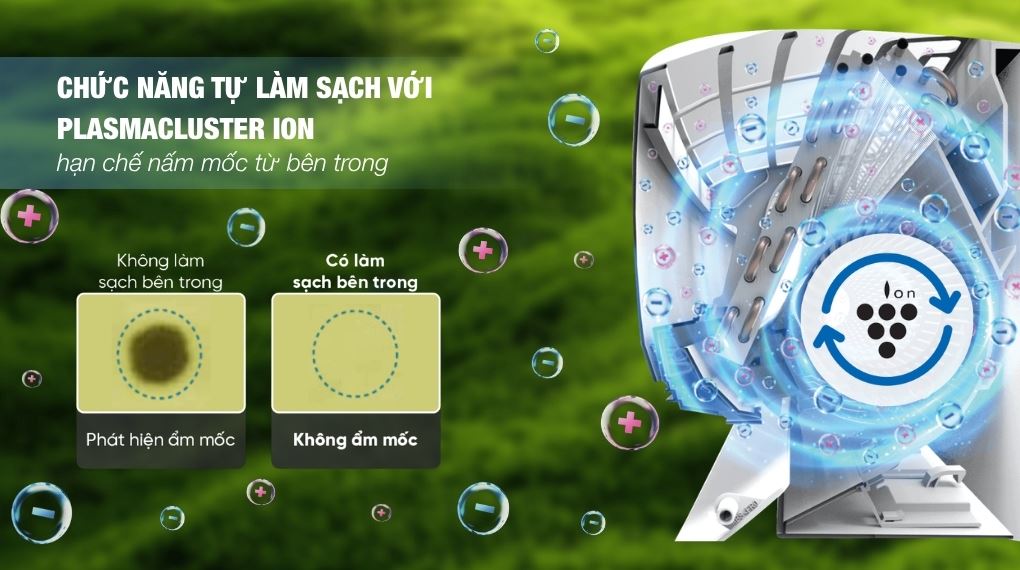 Bên cạnh khả năng hỗ trợ làm sạch không khí, Plasmacluster ion còn được ứng dụng vào tính năng tự làm sạch PCI bên trong máy , giúp giảm bớt vi khuẩn và mùi khó chịu trong dàn lạnh sau thời gian vận hành.