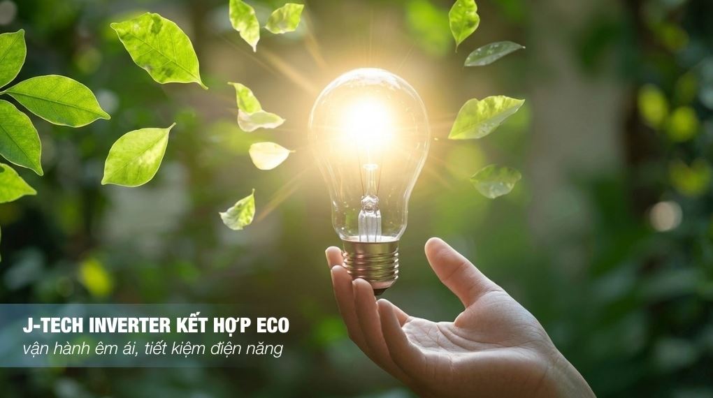 Máy được trang bị J-Tech Inverter kết hợp chế độ Eco để hướng đến khả năng vận hành bền bỉ và tiết kiệm điện năng trong quá trình sử dụng. Bộ đôi này giúp máy duy trì nhiệt độ ổn định, đồng thời hạn chế tình trạng tiêu hao điện không cần thiết khi phải hoạt động trong thời gian dài.