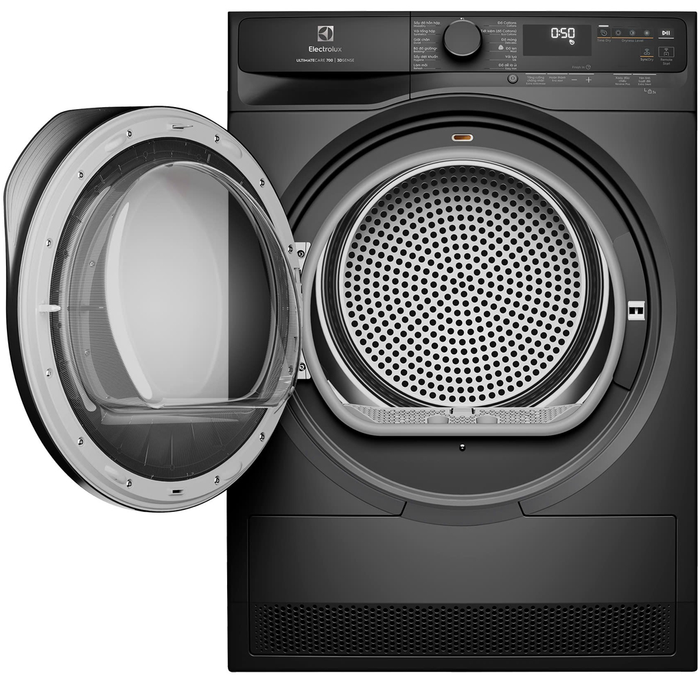- Máy sấy bơm nhiệt Electrolux UltimateCare 9 kg EDH903R7SC có thiết kế hiện đại, máy mang sắc đen chủ đạo tinh tế, tạo điểm nhấn cho không gian phòng giặt nhà bạn.
