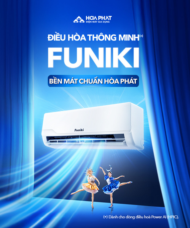 Máy lạnh Funiki (thương hiệu thuộc Điện lạnh Hòa Phát) nổi bật với giá thành bình dân, độ bền cao nhờ dàn tản nhiệt mạ lớp bảo vệ, và khả năng tiết kiệm điện (Inverter/Eco). Sản phẩm sử dụng gas R32 thân thiện môi trường, làm lạnh nhanh (Turbo) và vận hành êm ái, đáp ứng nhu cầu cơ bản với độ bền ổn định.