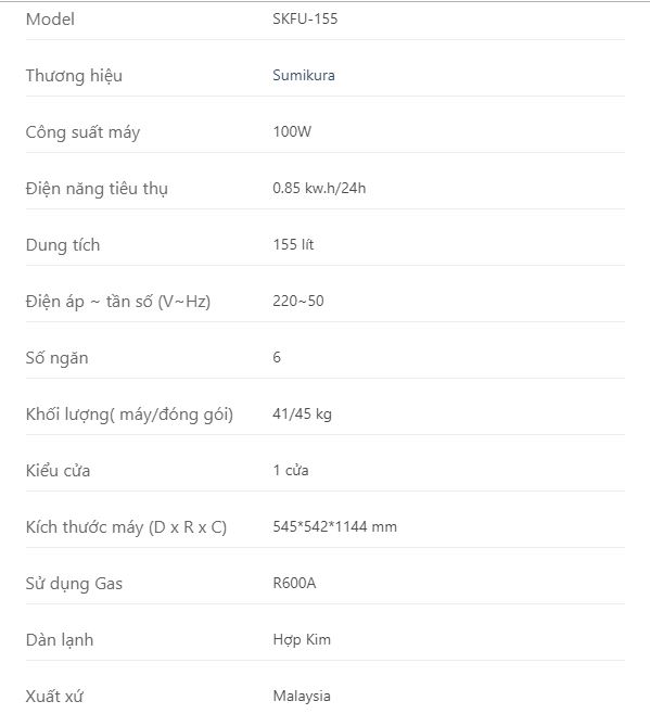 Tủ đông Sumikura SKFU-155 có dung tích 155 lít thiết kế mới lạ như một chiếc tủ lạnh đứng, tiết kiệm không gian hoàn hảo.Tủ thích hợp cho gia đình, căn tin, tạp hóa mini,… có nhu cầu trữ lượng thực phẩm bảo quản ít.