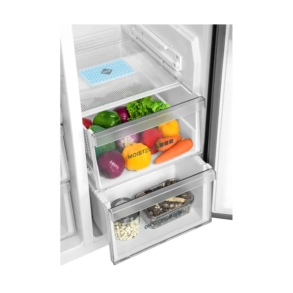 Bên cạnh nhiệt độ thì độ ẩm cũng là yếu tố quan trọng khi bảo quản thực phẩm. Mỗi loại thực phẩm sẽ cần có độ ẩm khác nhau để duy trì thời gian sử dụng. Vì thế Tủ Lạnh Aqua Inverter 602 Lít AQR-IG696FS (GB) đã trang bị ngăn trữ thực phẩm khô và ẩm tách biệt.