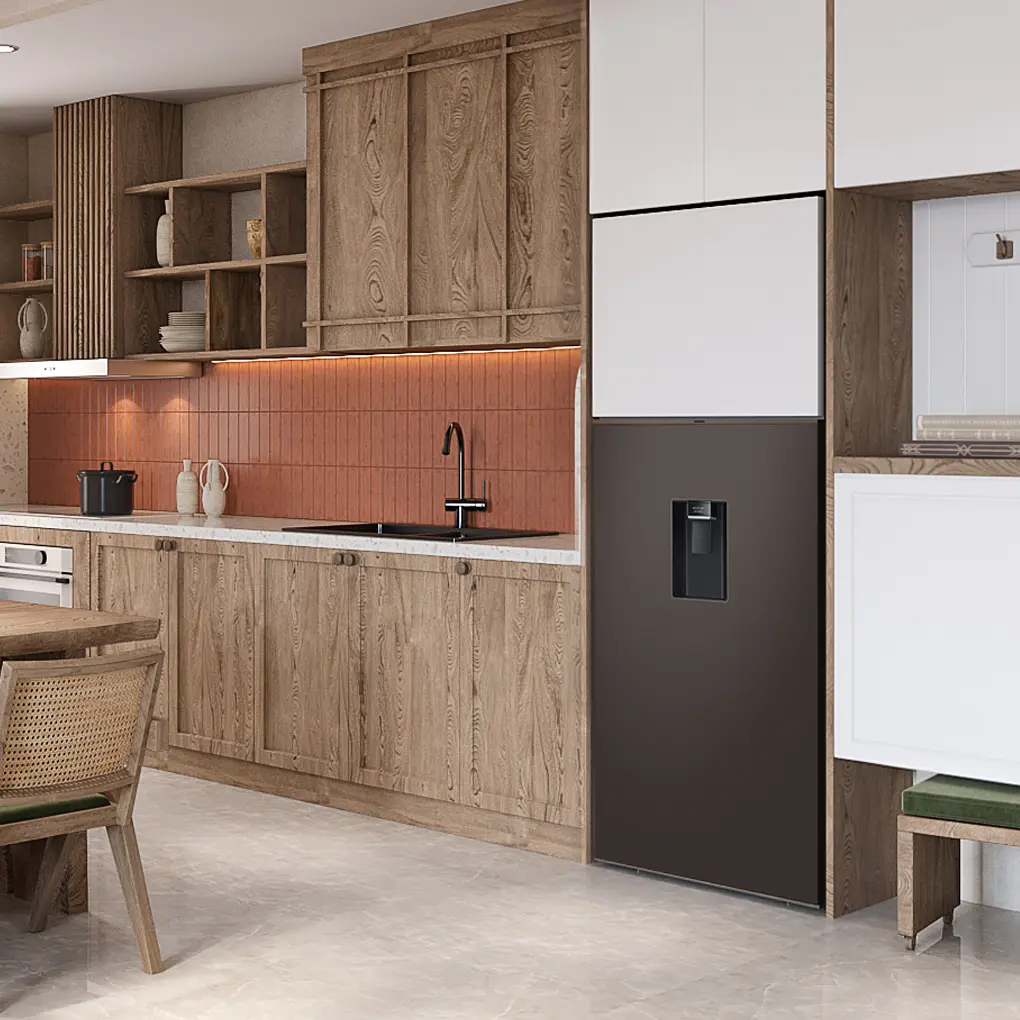 Tủ Lạnh Samsung Bespoke màu nâu và trắng