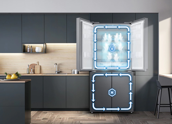 Tủ lạnh Samsung được trang bị 2 dàn lạnh độc lập ở ngăn đông và ngăn lạnh, ngăn luồng khí lạnh xâm nhập lẫn nhau và cho phép điều chỉnh nhiệt tại hai ngăn riêng biệt, mang đến độ ẩm phù hợp và giữ trọn vẹn hương vị, dưỡng chất của thực phẩm.
